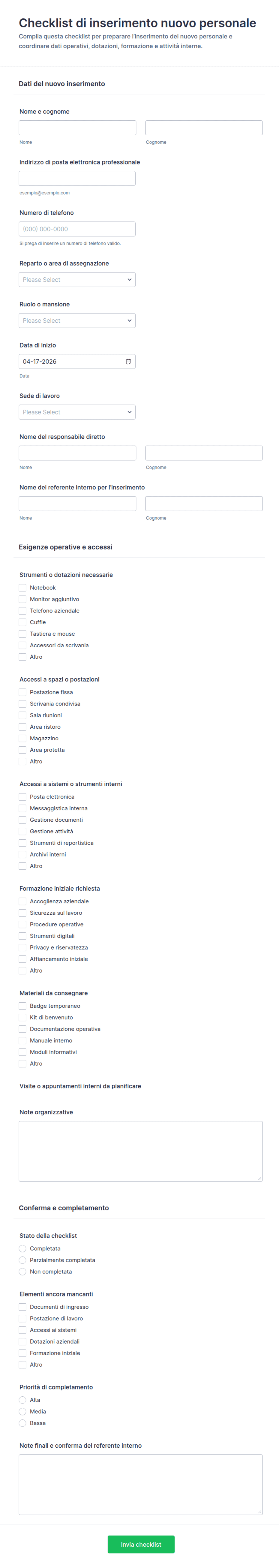 - Incorpora il modulo nella tua intranet o nel portale di onboarding per un facile accesso.