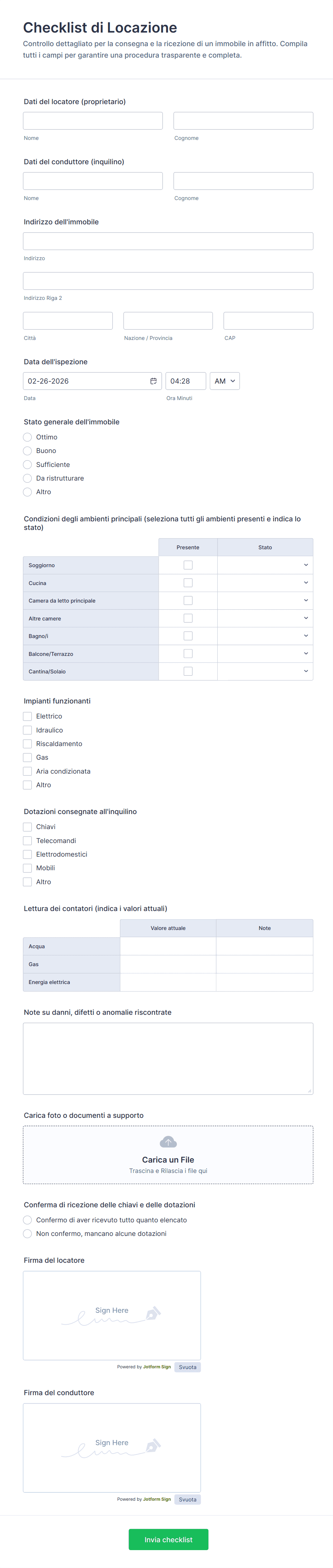 Seguendo questi passaggi, puoi creare un Modulo di Ispezione per Proprietà in Affitto che non solo documenta accuratamente le condizioni della proprietà, ma migliora anche la trasparenza e l'efficienza nel tuo flusso di lavoro di gestione immobiliare.