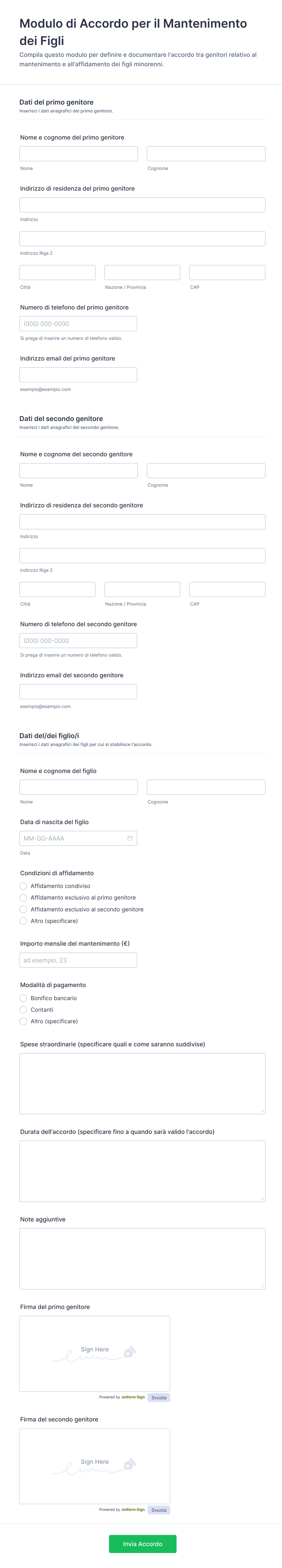 - Alcuni moduli potrebbero richiedere integrazioni di pagamento (ad esempio, accordi di compenso), mentre altri necessitano di widget avanzati come firme elettroniche o campi di caricamento file.
