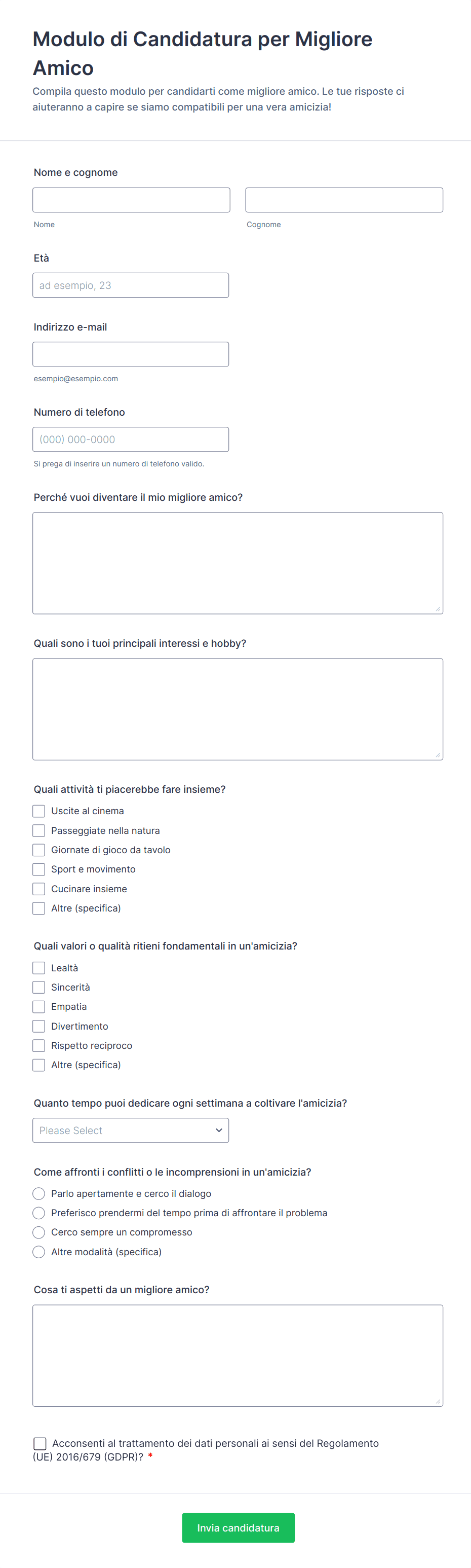 - Per le domande di iscrizione o di volontariato, concentrati sulle informazioni di contatto, sugli interessi e sulla disponibilità.