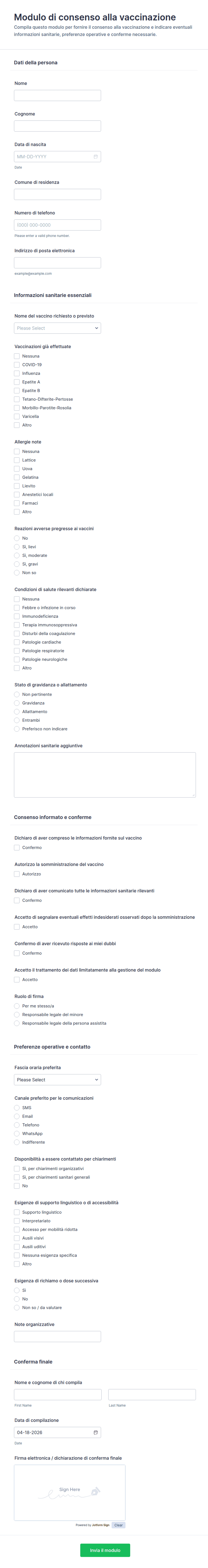 - Consenso per la vaccinazione di adulti o minori