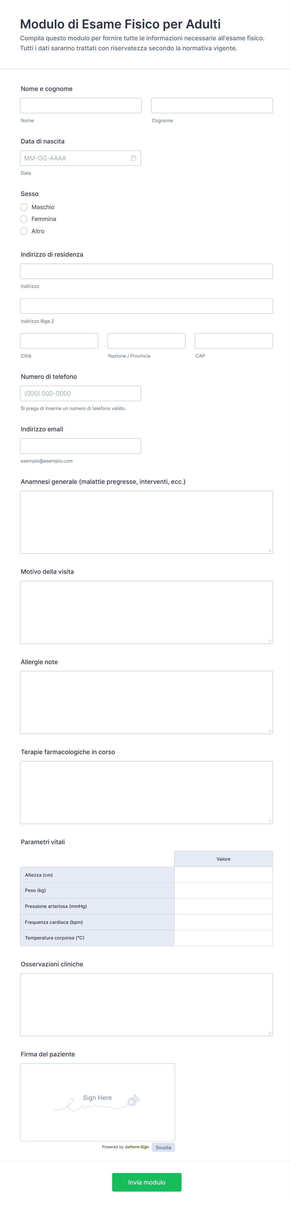 - I moduli di accettazione sanitaria possono richiedere campi per la storia clinica, le allergie e l'assicurazione.