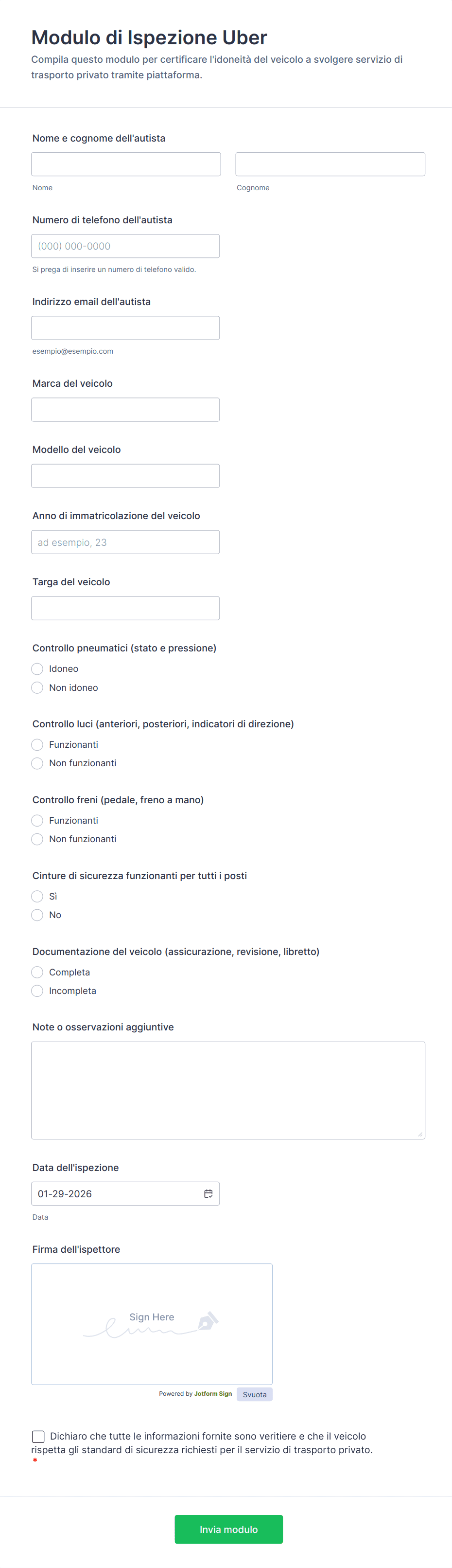 Come creare un Modulo di Ispezione dei Veicoli