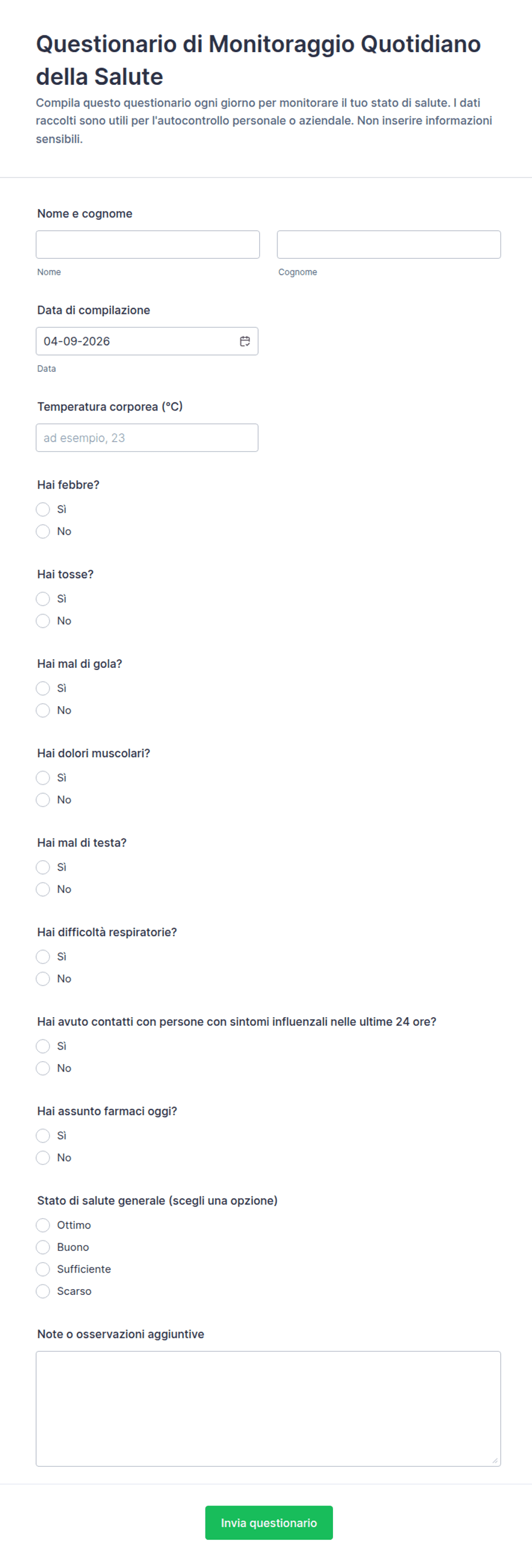 Modulo Di Monitoraggio Della Salute Quotidiano 🩺