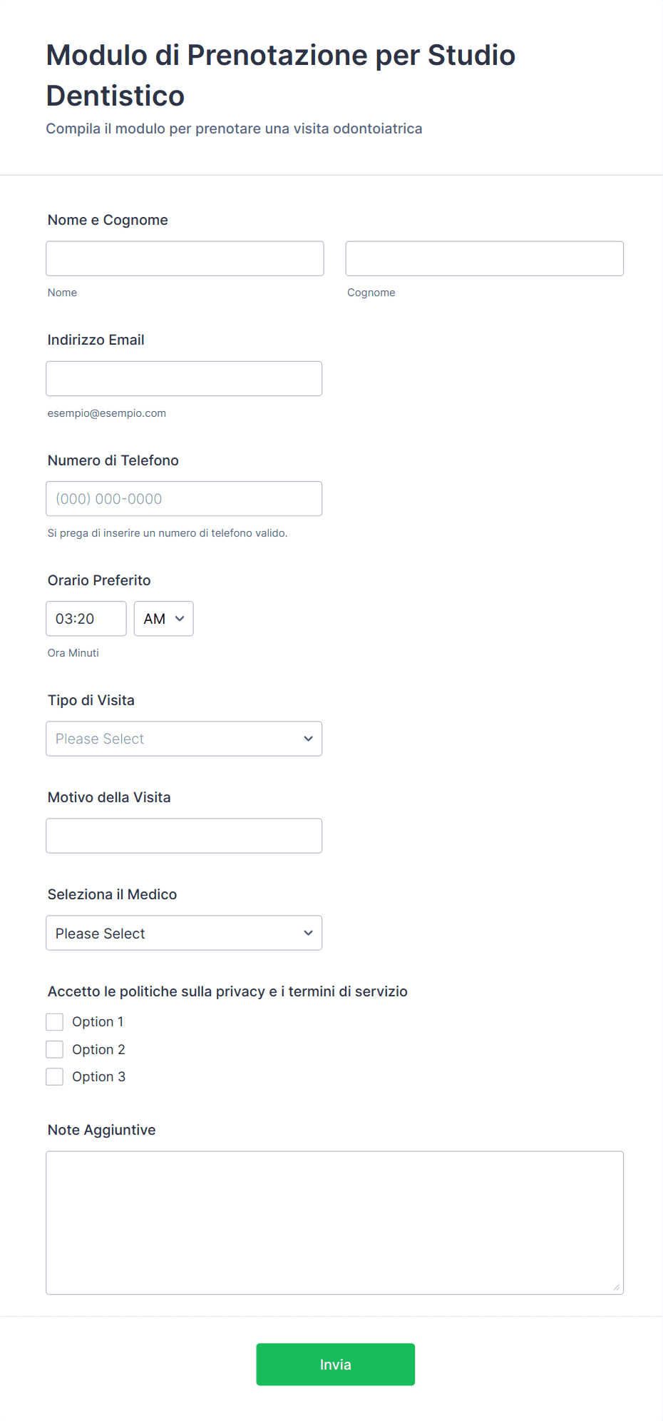 3. Quali informazioni sono solitamente incluse in un modulo per dentisti?