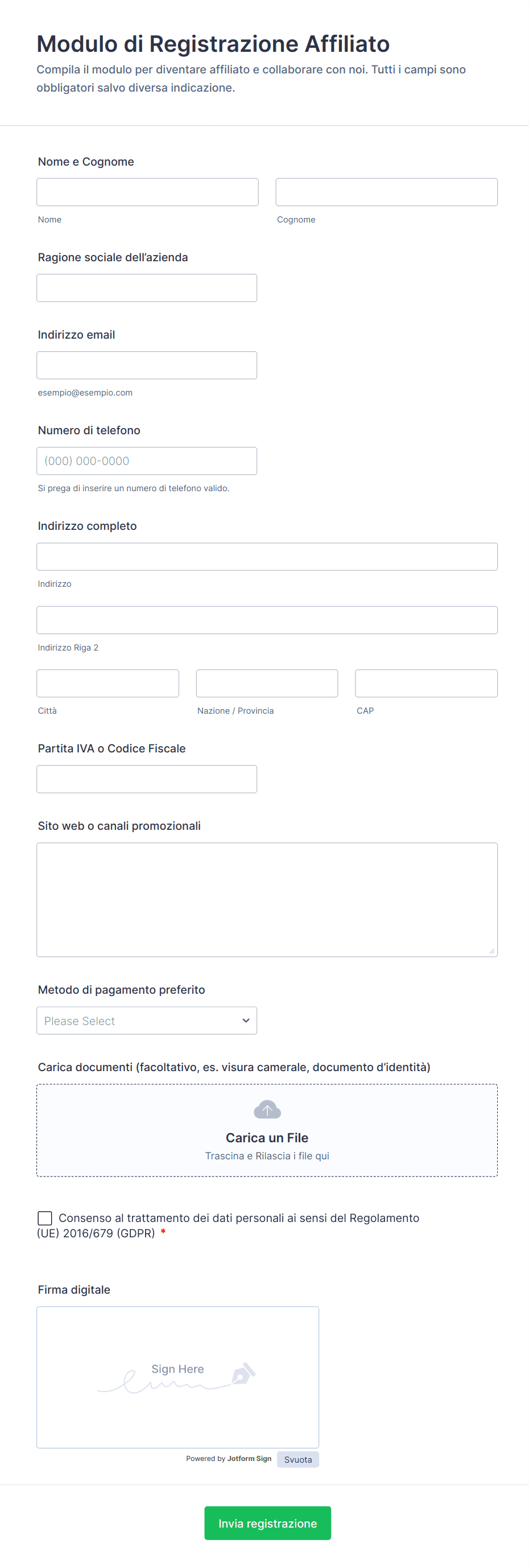 Modulo Di Registrazione Affiliato