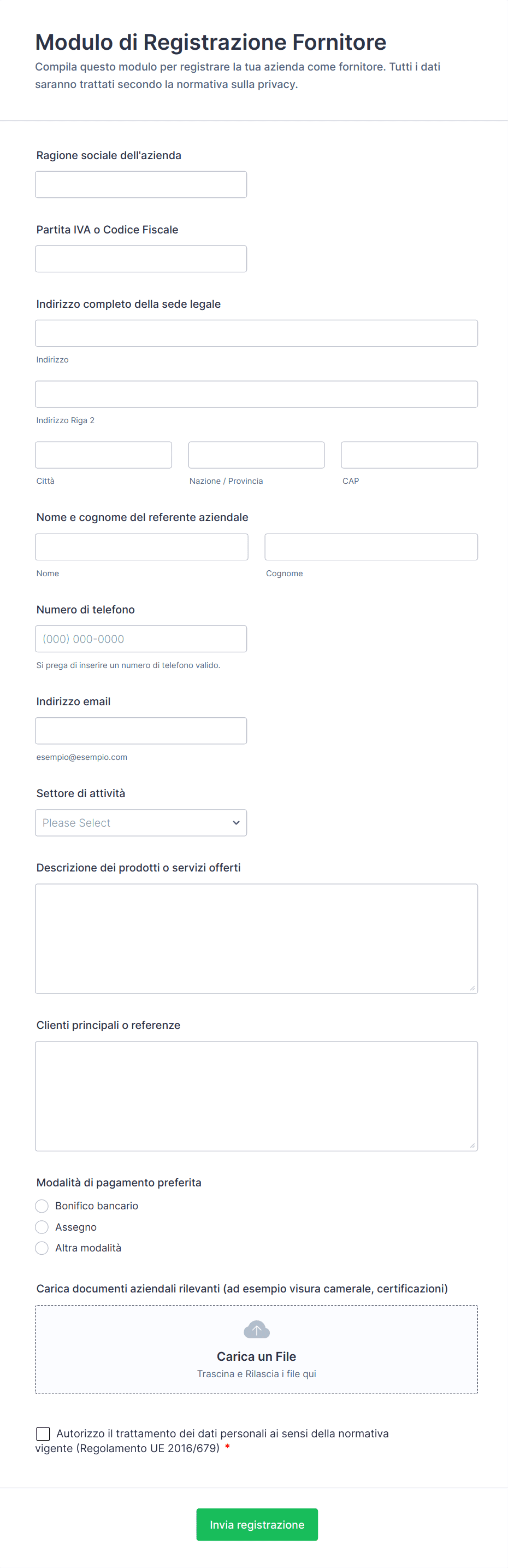 • Se necessario, incorpora il modulo direttamente nella pagina di registrazione del fornitore.