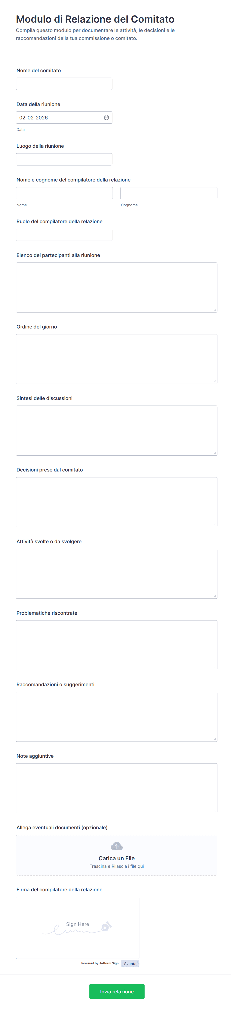 - Per i report aziendali: Includi campi per date, metriche, commenti e caricamento di file.