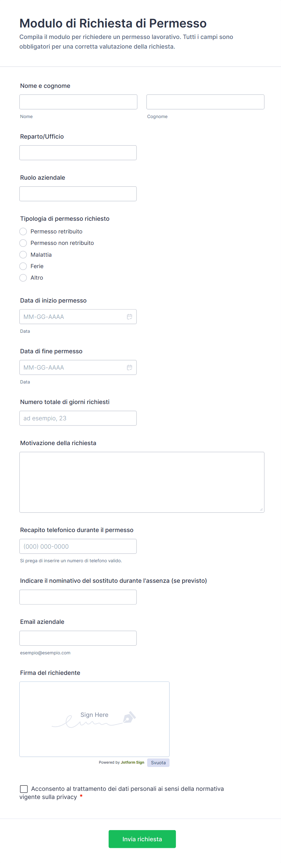 Utilizzi dei Modelli di Modulo di Richiesta di Permesso