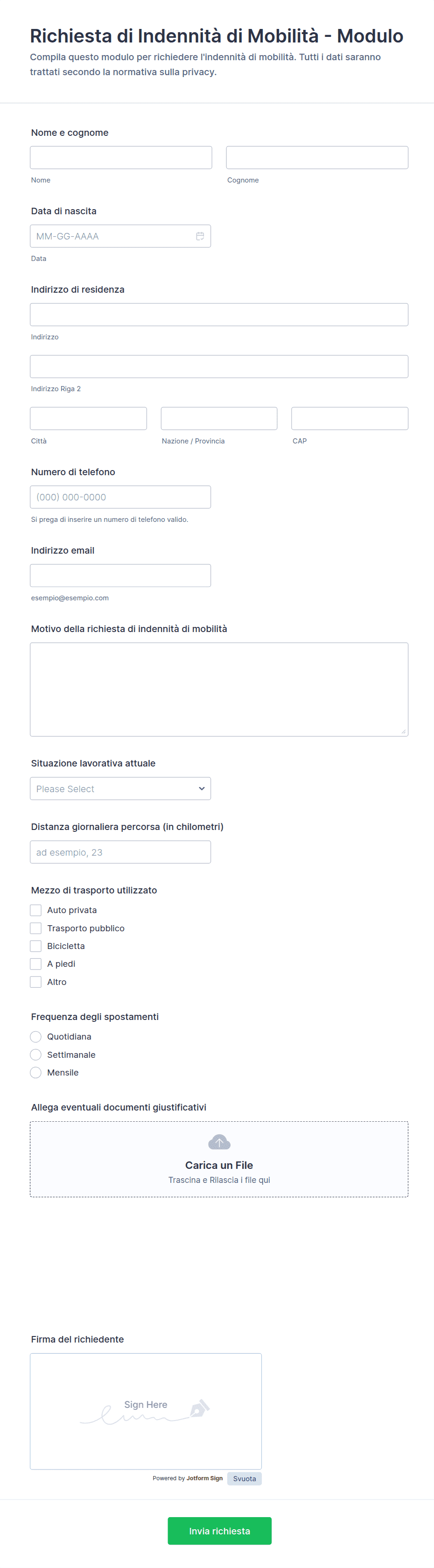 -Rimborsi sanitari: Possono includere campi per le informazioni del paziente, dettagli del trattamento, dati del fornitore e ricevute.