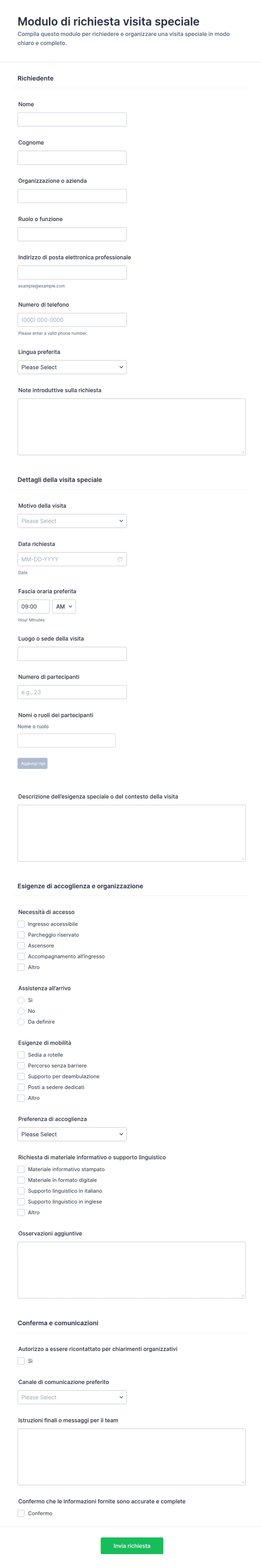 3. Quali informazioni sono tipicamente incluse in un modulo di richiesta?