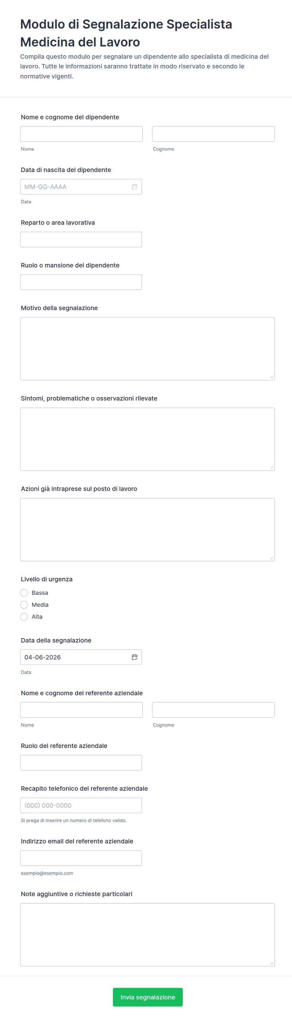 In sintesi, i modelli di Modulo per Visite Specialistiche possono essere adattati per una vasta gamma di scenari sanitari, garantendo che ogni segnalazione venga gestita in modo efficiente e sicuro.