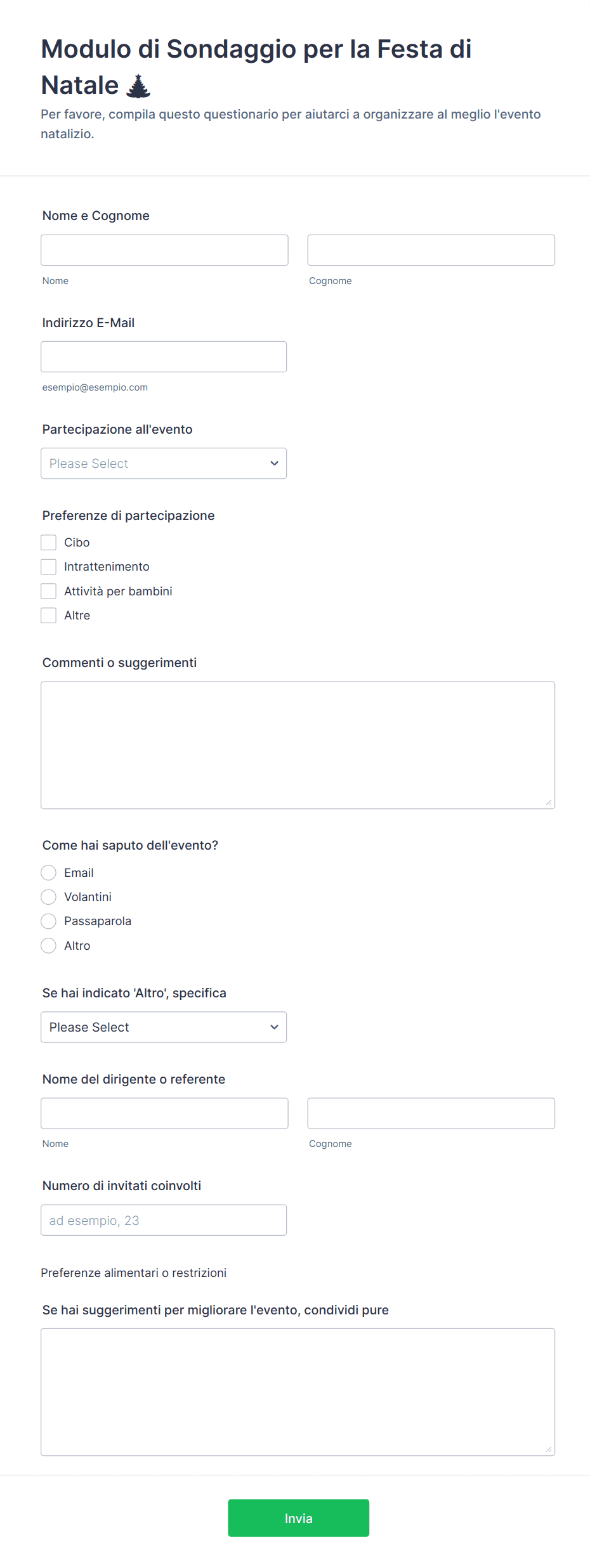 - Sondaggi festivi o moduli di feedback per migliorare l'evento