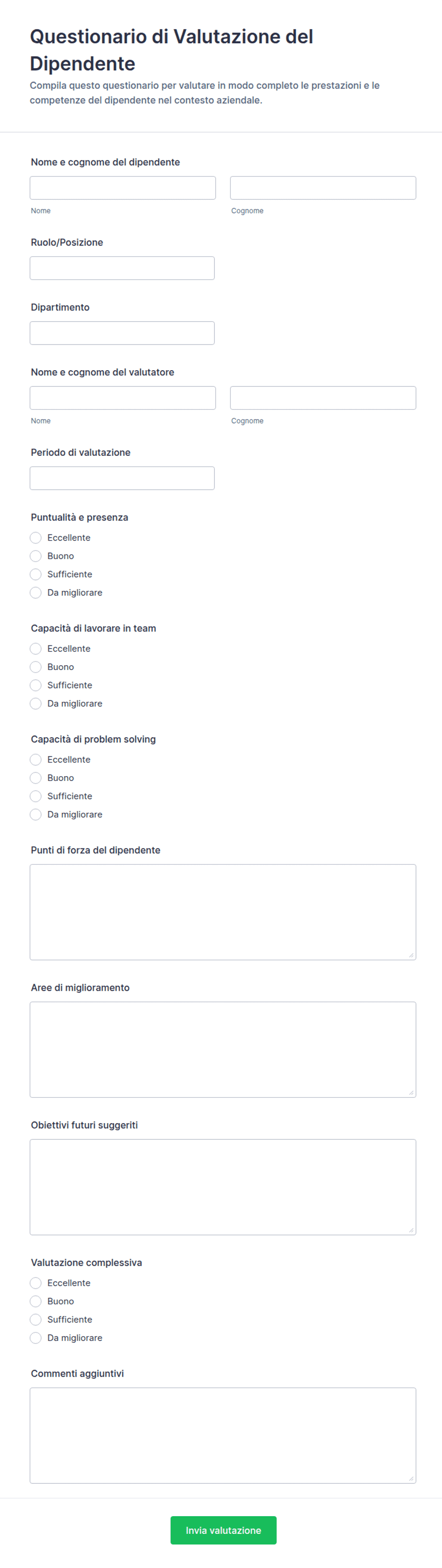 Valutazione Delle Prestazioni Del Dipendente Questionario
