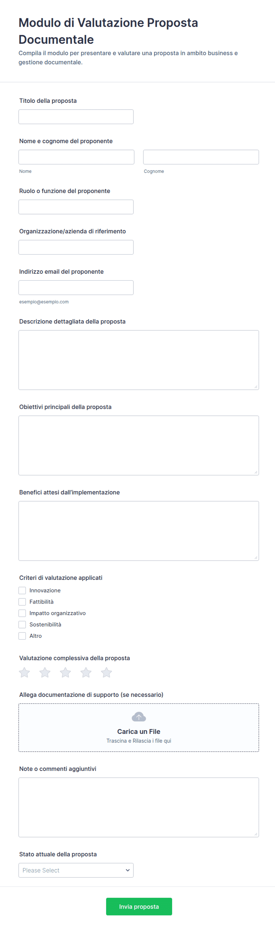 - Logica Condizionale: I moduli possono visualizzare o nascondere campi in base all'input dell'utente (ad esempio, documentazione aggiuntiva per acquisti di alto valore).