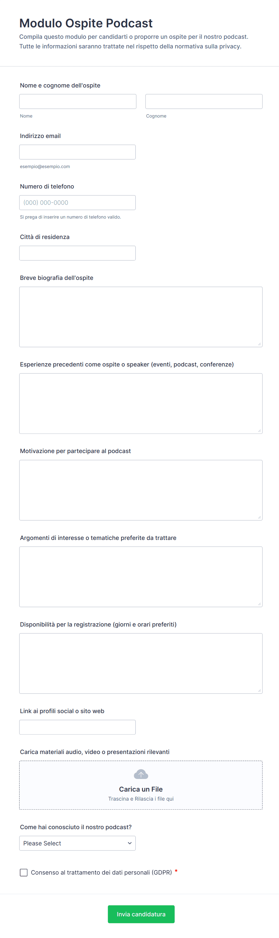 - Per le domande di iscrizione o di volontariato, concentrati sulle informazioni di contatto, sugli interessi e sulla disponibilità.