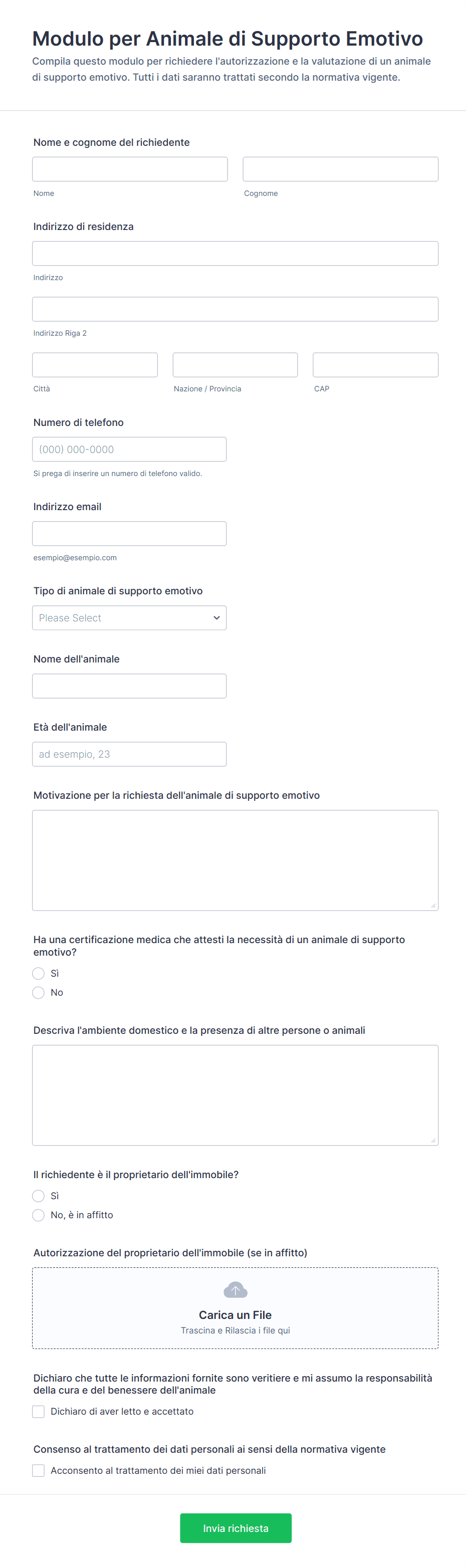 - Richieste di affitto o leasing: seleziona i potenziali inquilini raccogliendo referenze, informazioni personali e finanziarie.