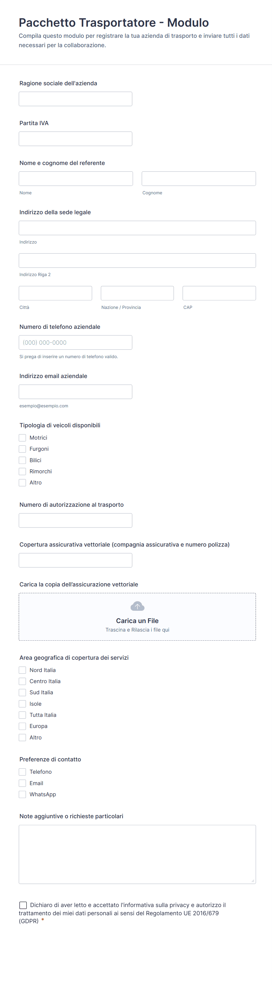 Come creare un Modulo di Richiesta di Trasporto