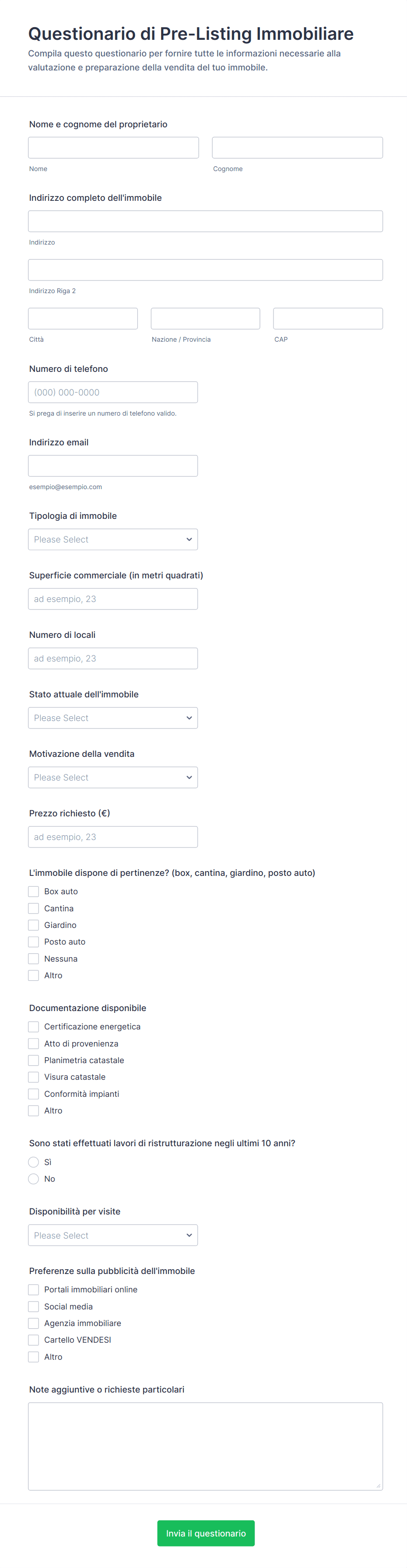 Questionario Di Pre Listing Immobiliare