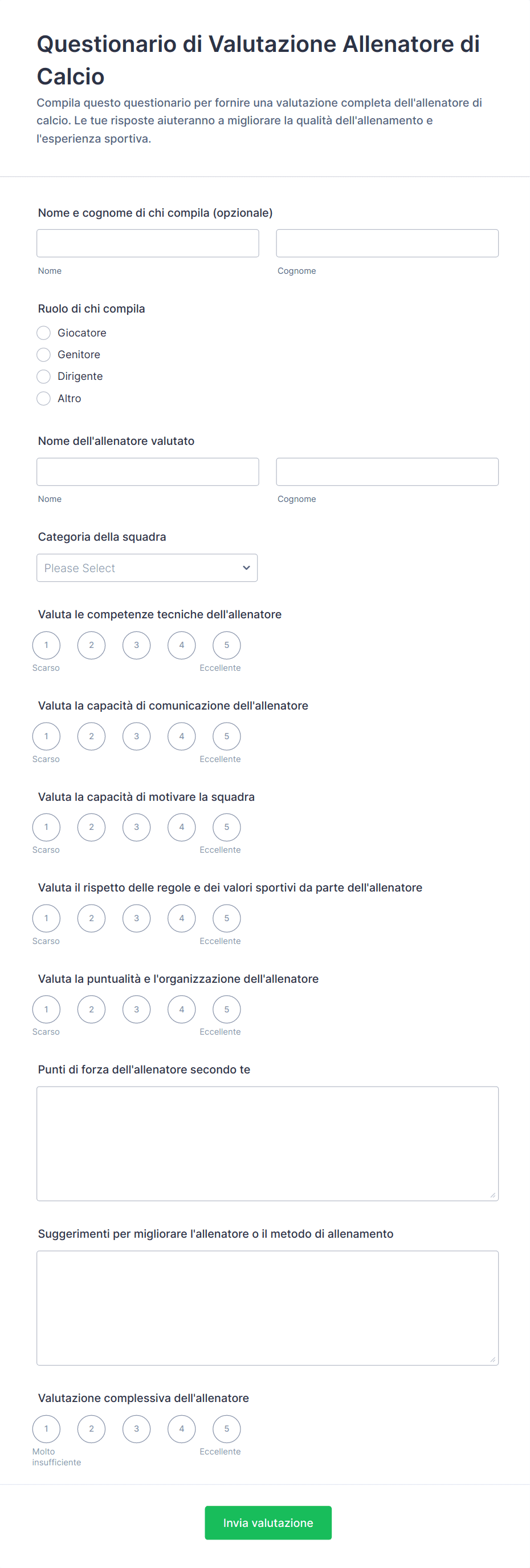 - La scelta dei tipi di domande (scelte multiple, scale di valutazione, testo aperto) varia a seconda del caso d'uso.