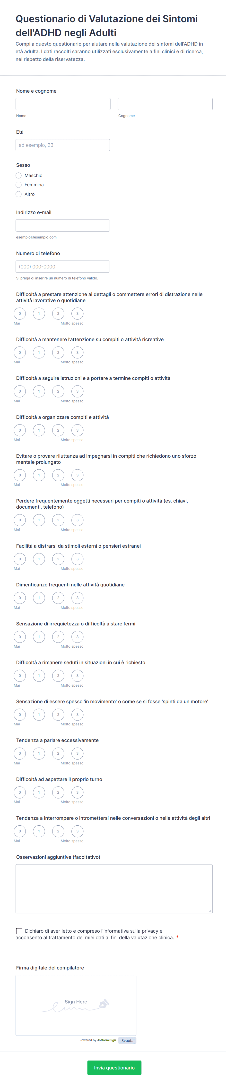 - Per le valutazioni del rischio per la salute, includi caselle di controllo o domande a scelta multipla su stile di vita, storia familiare e fattori di rischio specifici.