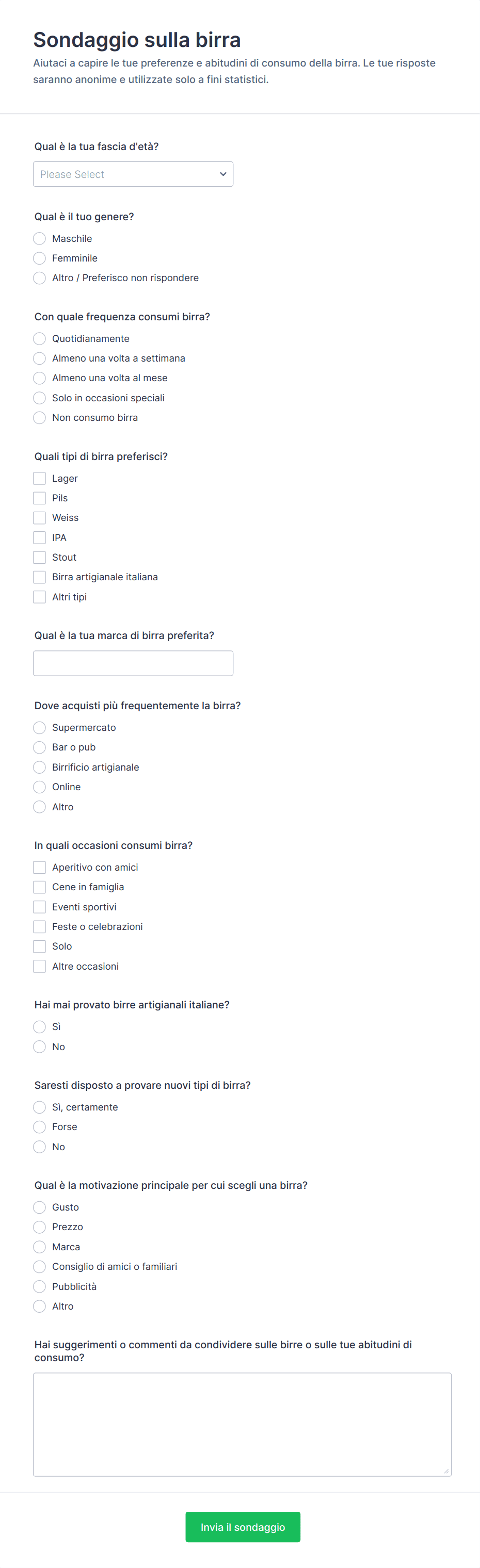 3. Quali informazioni vengono tipicamente raccolte in un sondaggio sul prodotto?