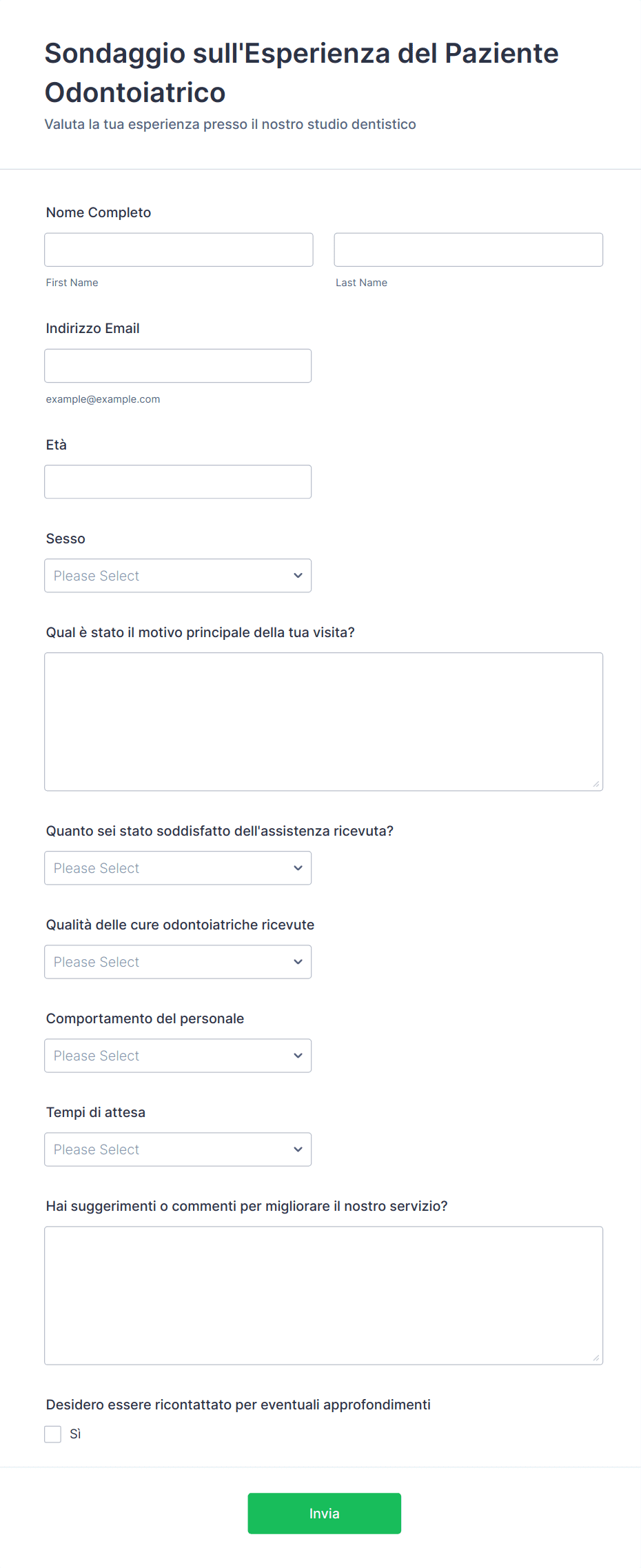 Per creare un efficace Modulo di Feedback del Paziente, segui questi passaggi:
