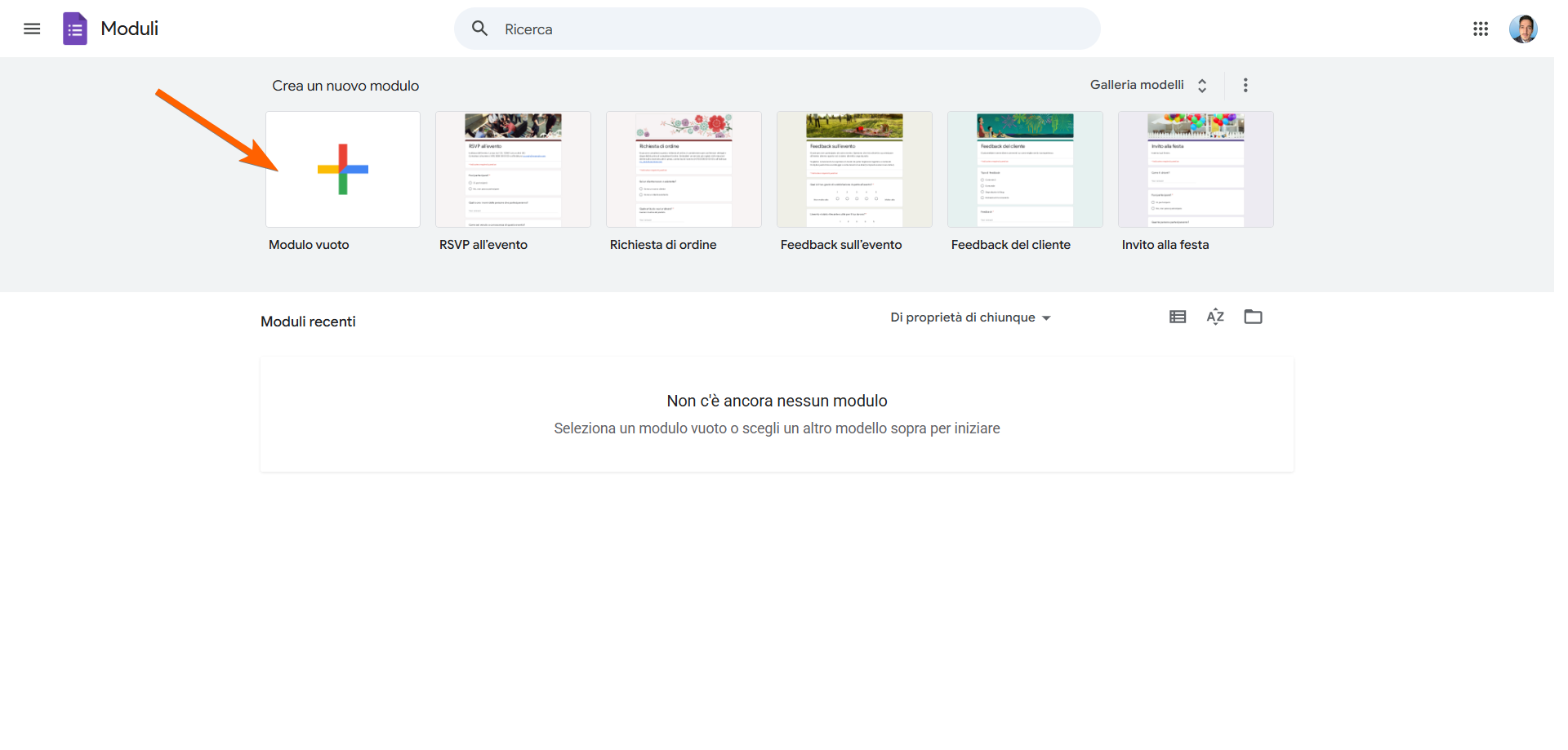 - Seleziona Modulo Vuoto sotto a Crea un nuovo modulo