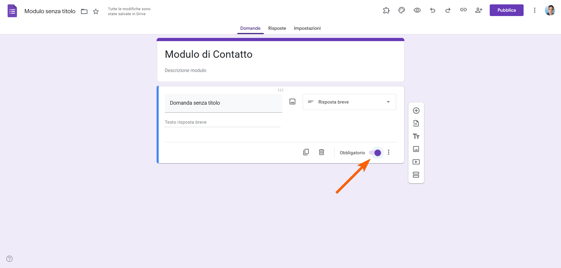 - Attiva l’opzione Obbligatorio nell’angolo in basso a destra