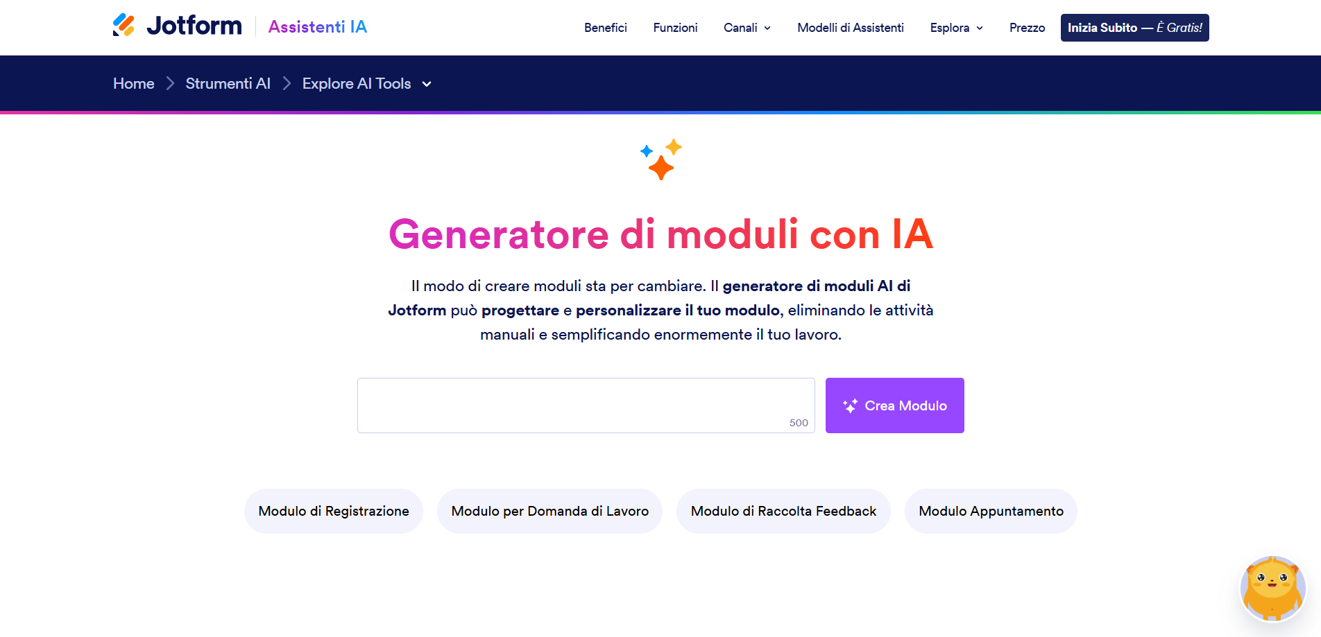 - OPPURE usa Jotform per integrare l’IA in ogni fase della creazione del modulo con facilità.