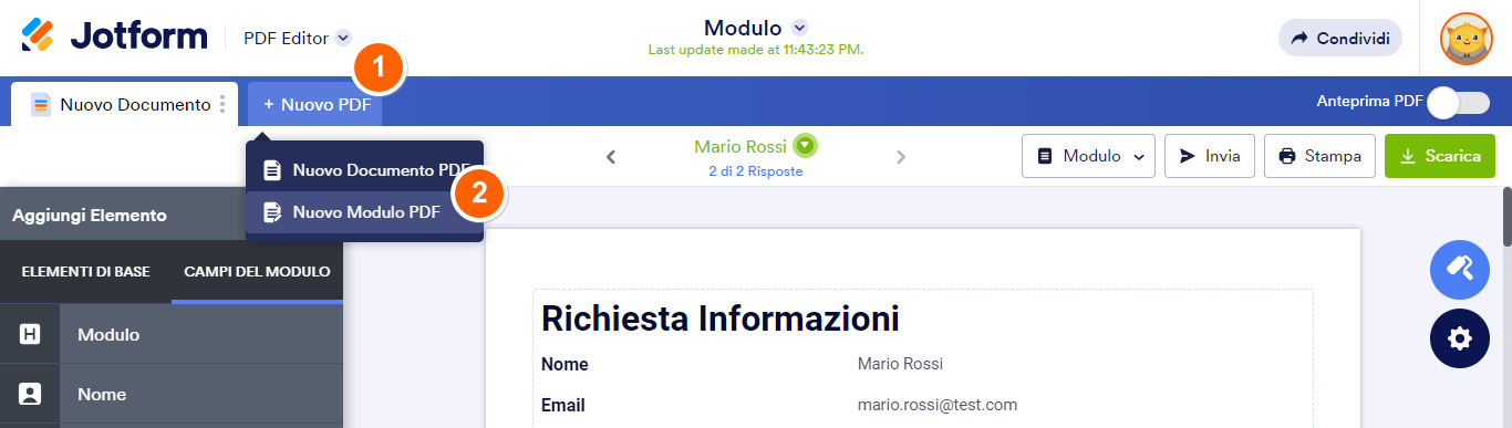 2. Selezionare l’opzione Nuovo Modulo PDF.