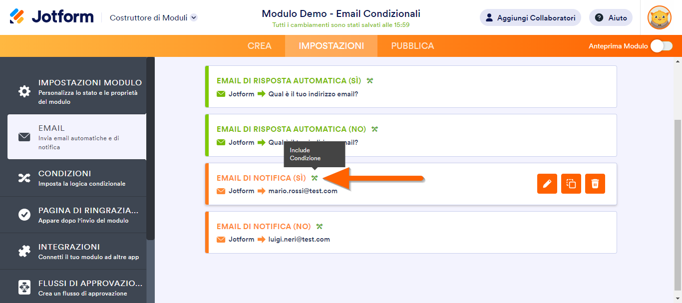 Una volta preparati i template email, il prossimo passo è quello di configurare la logica condizionale: