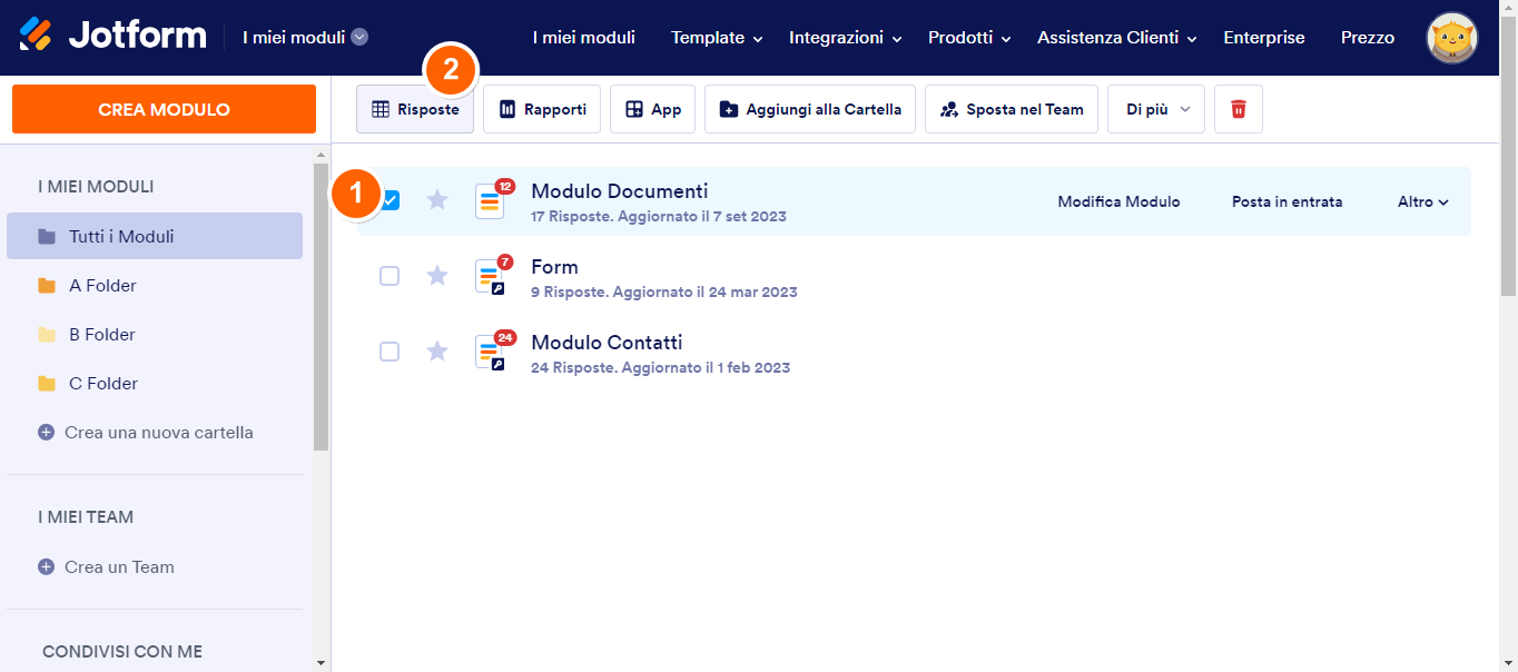 - Dalla pagina I Miei Moduli, scegli un modulo.