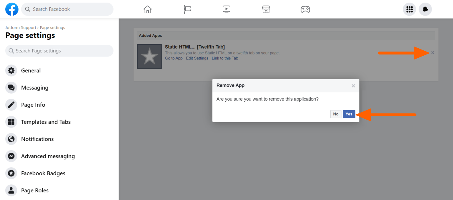 Puoi rimuovere facilmente il tab personalizzato aggiungendo lo stesso parametro URL settings/?tab=apps alla tua pagina Facebook, ma questa volta procedendo in questo modo: