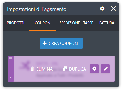 Infine, per eliminare o duplicare un codice coupon, apri nuovamente le impostazioni del coupon.