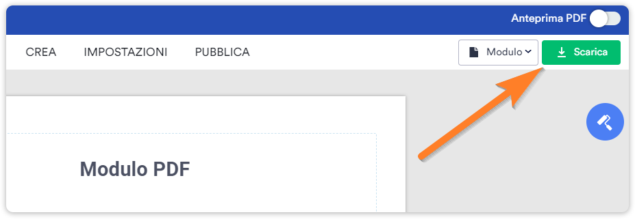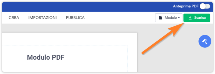 Se ti trovi nel Costruttore di Moduli, per scaricare il PDF puoi procedere in questo modo: