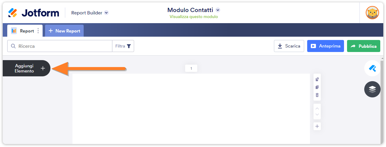 Su un nuovo tab del tuo browser, si aprirà la pagina del Costruttore di Report con il Report del modulo selezionato.