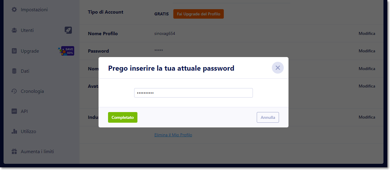 4. Ti verrà a questo punto richiesto di inserire la password del tuo account Jotform, quindi cliccare sul pulsante Completa.