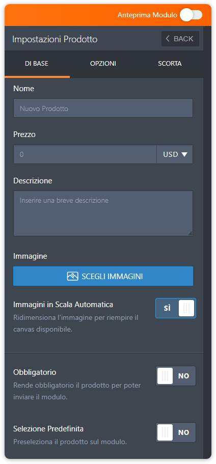Quindi inserisci i dettagli del prodotto. È possibile definire opzioni come quantità, misura, colore, etc.