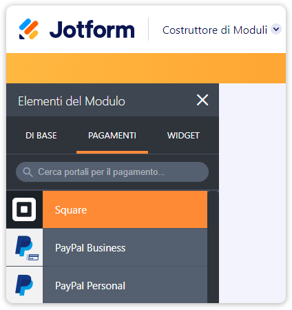 2. Andare quindi al tab Pagamenti e aggiungere Square al modulo.