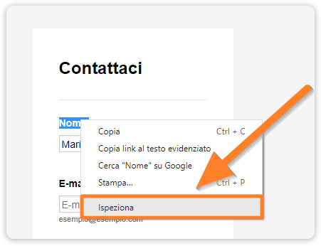 a. Evidenzia e clicca col tasto destro sull’elemento che desideri nascondere e seleziona Ispeziona