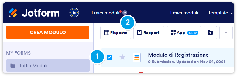 1. Vai alla pagina I Miei Moduli.