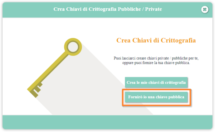 Per iniziare, clicca sul pulsante Crea le mie chiavi di crittografia.