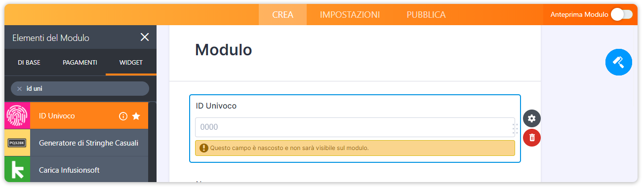 Esistono diversi modi, ma il più comune è utilizzare il widget ID Univoco, che ti permetterà di aggiungere un codice univoco per ogni invio del modulo.