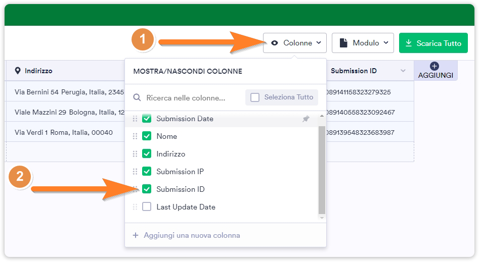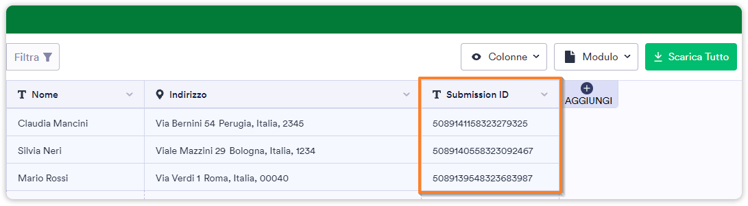 4. Il Submission ID sarà ora mostrato nell’ultima colonna della tabella.