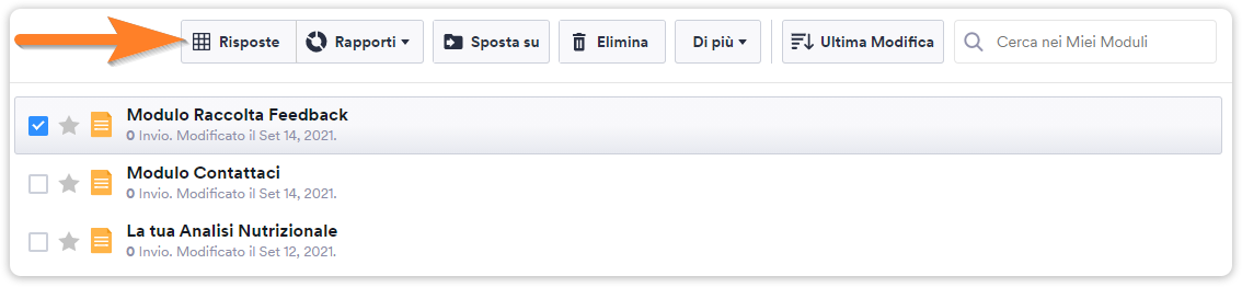 1. Dalla pagina I Miei Moduli, seleziona il modulo e clicca il pulsante Risposte per aprire la Tabella delle risposte.