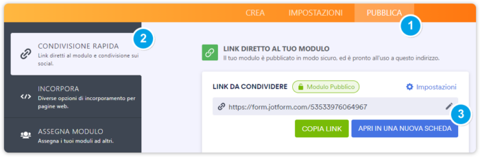 1. Vai al tab Pubblica e apri il modulo in un nuovo tab.