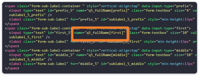 1. Prima di tutto ottieni il nome del campo tramite il codice HTML.