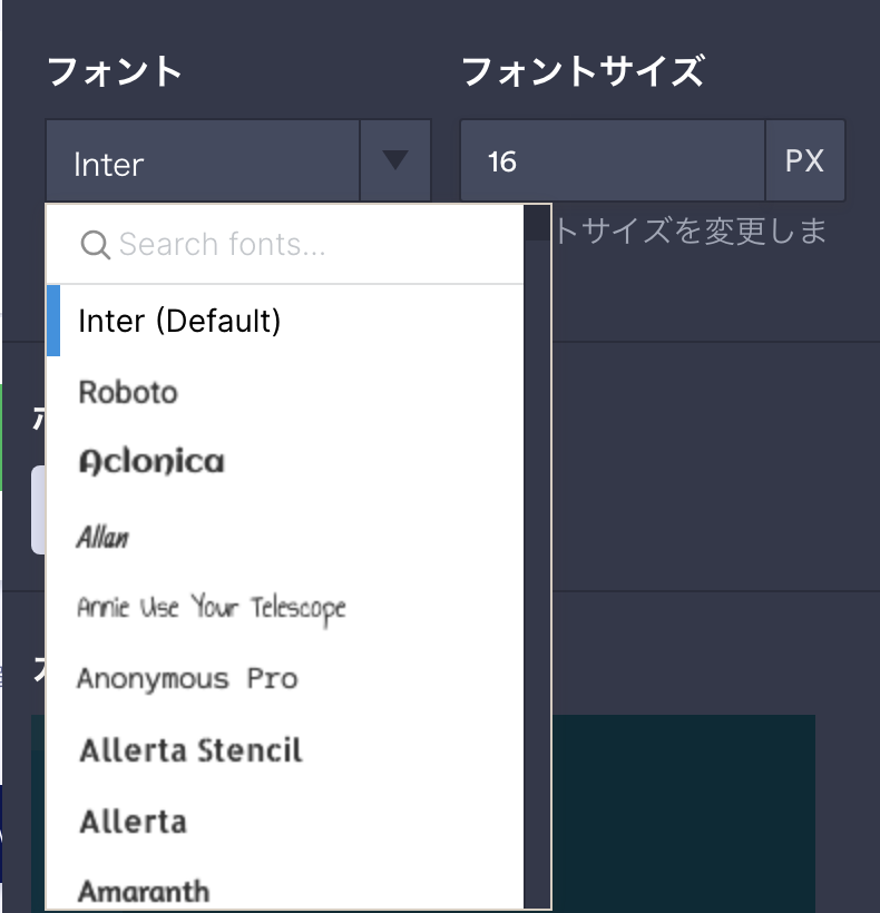 右側の設定メニューから、Fontsタブを選択します。