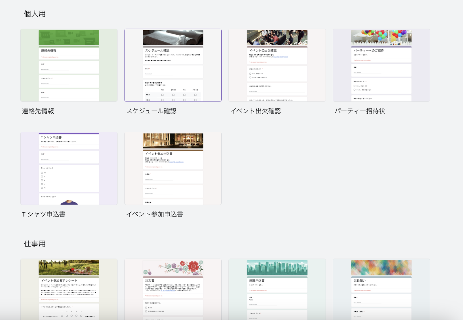 - テンプレートを選びましょう。これは任意の手順で、テンプレートを使用せずにゼロからフォームを作成することもできますが、オンラインで無料のテンプレートを見つければ簡単にフォームの作成ができます。また、Googleフォームでも、修正可能な無料のテンプレートを提供しています。